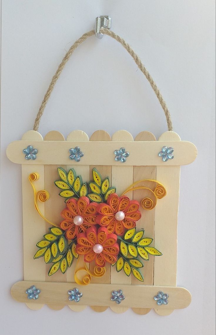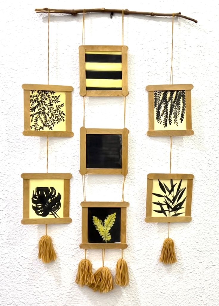 Kanvas gantung yang dibuat dari batang es krim bisa menjadi pilihan hiasan dinding untuk memperindah tampilan ruangan. Hiasan ini dapat disesuaikan dengan gambar atau kalimat yang mencerminkan kepribadian pemilik rumah. Dekorasi ini juga bisa menjadi pusat perhatian yang menarik di dalam ruangan.