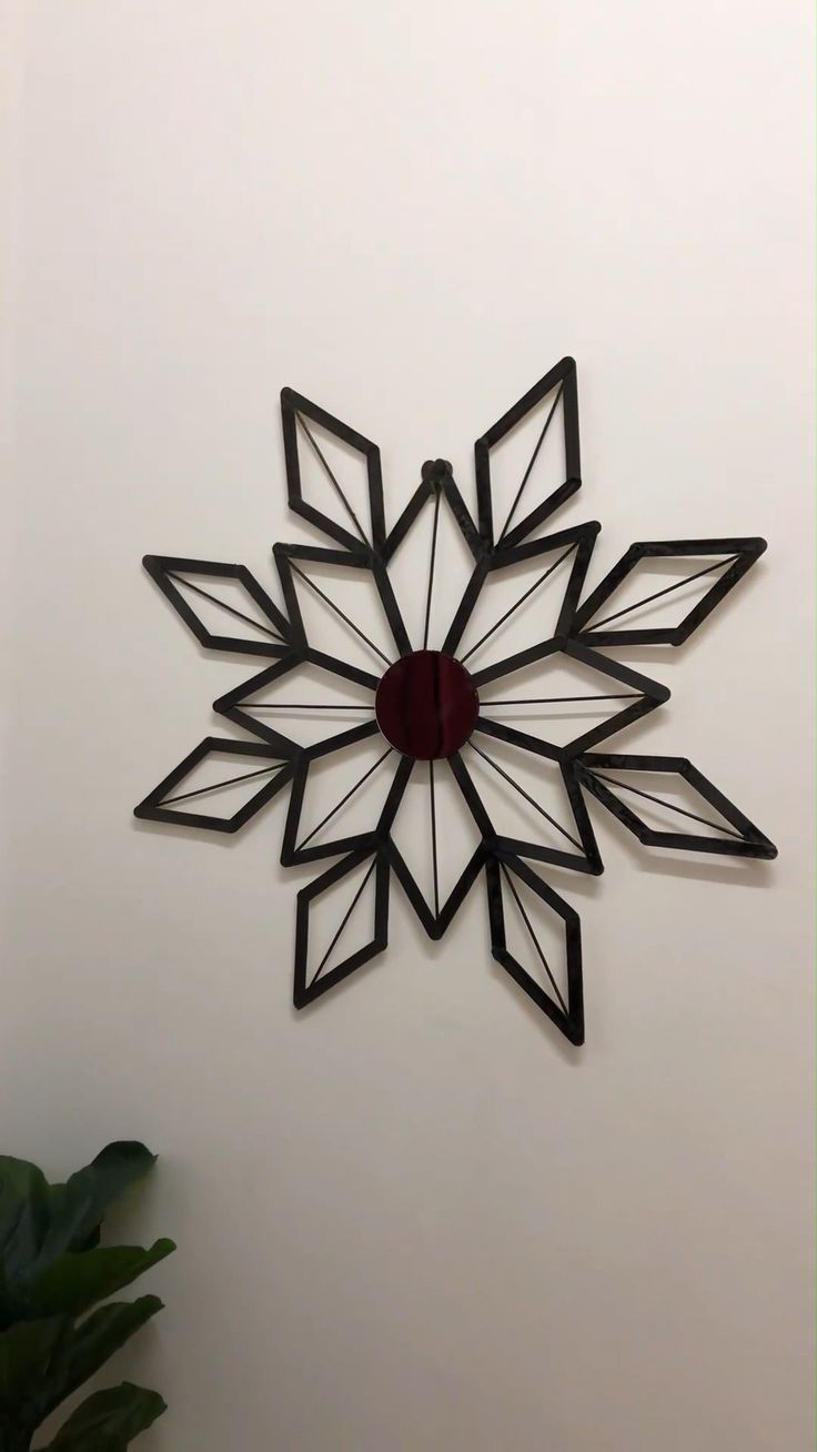 Hiasan dinding berbentuk geometris dari batang es krim mampu memberikan nuansa modern pada setiap ruangan. Pola garis dan sudut yang rapi menciptakan kesan sederhana namun anggun. Hiasan ini cocok untuk rumah dengan konsep modern yang ingin menonjolkan sisi minimalis tetapi tetap bernilai seni.