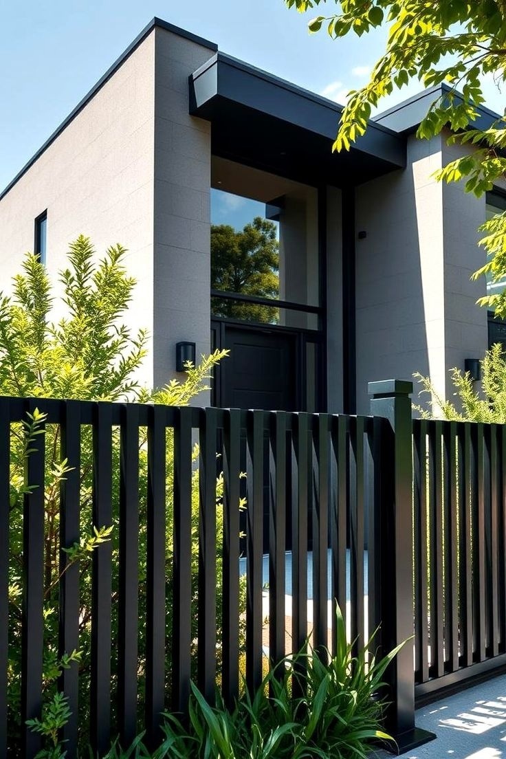 Selain warna hitam, Anda dapat memilih warna gelap lain seperti abu-abu batu atau biru tua. Pastikan pencahayaan yang mengarah ke pagar cukup, misalnya dengan lampu sorot atau lampu tiang, agar tidak terlihat terlalu gelap di malam hari.